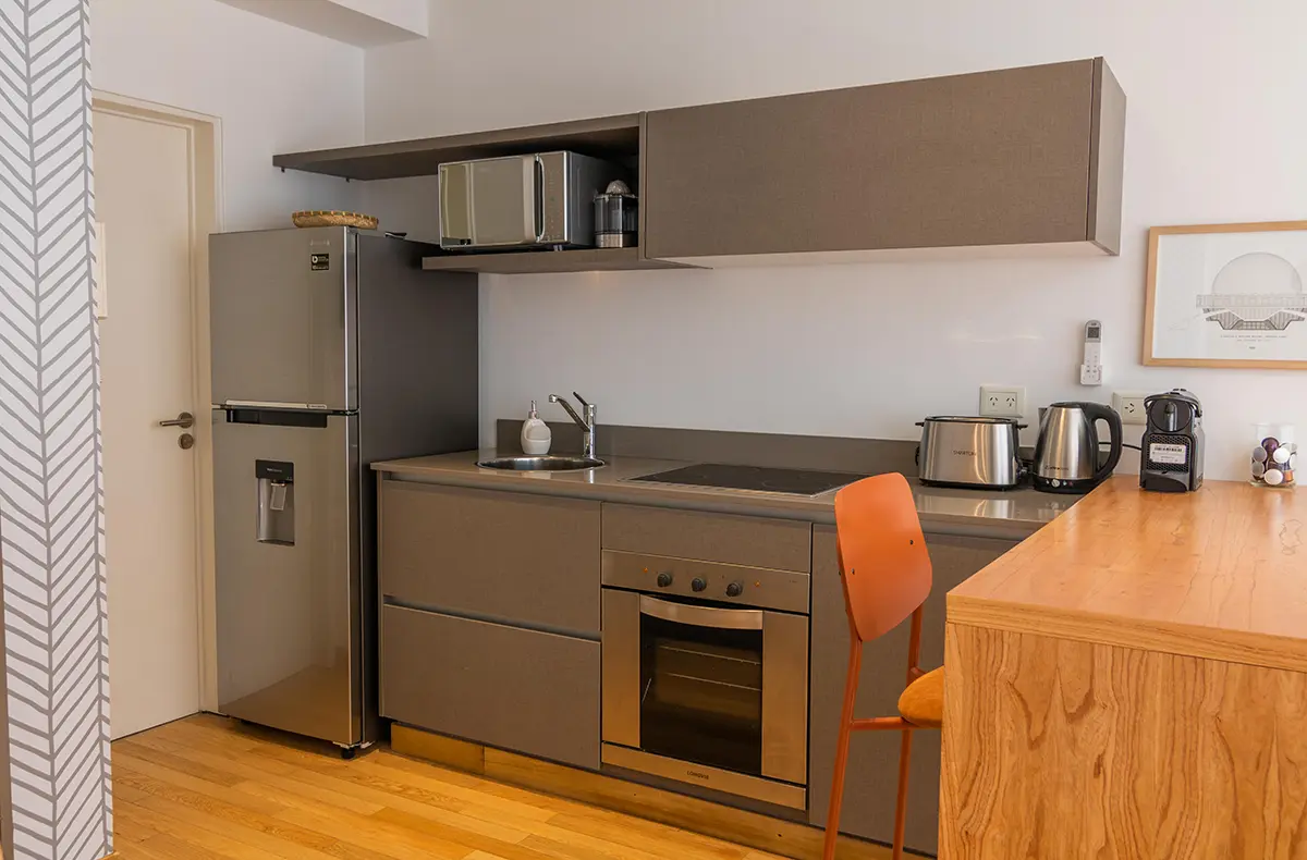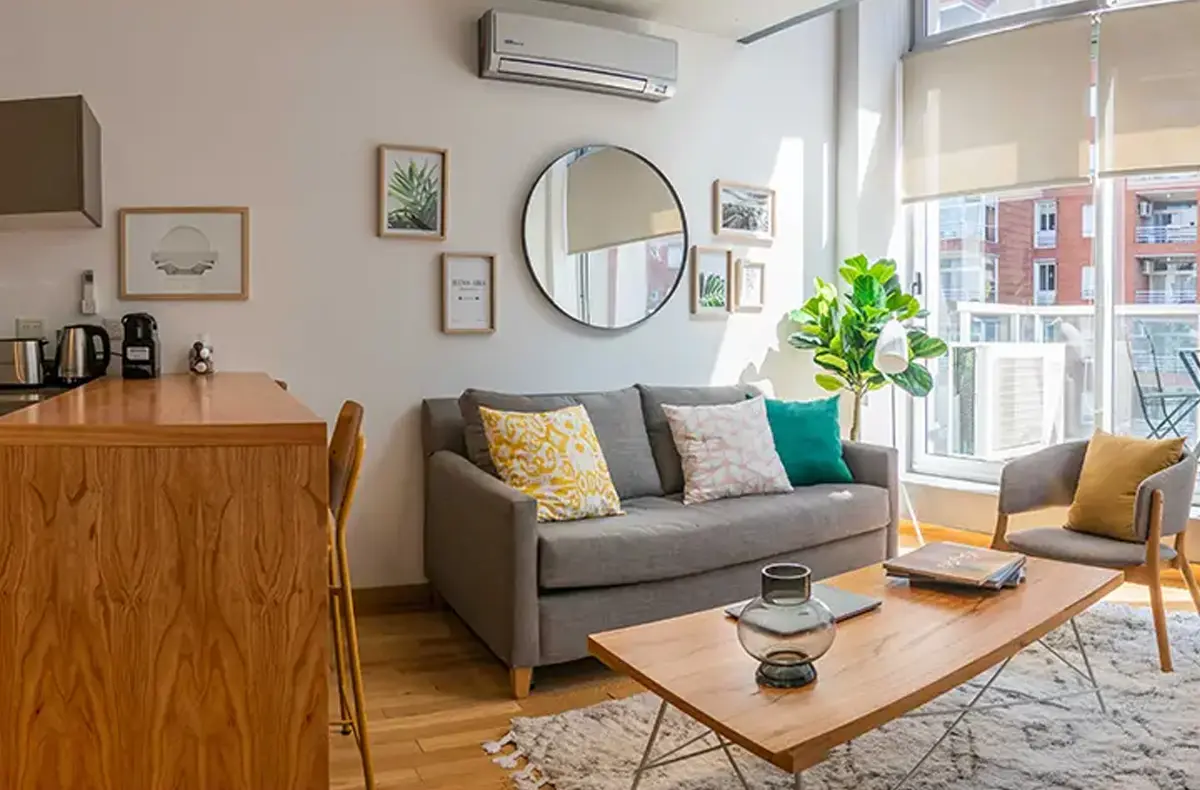Un departamento único que te hace sentir como en tu casa por su decoración de vanguardia y su equipamiento Premium. Muy luminoso y amplio que lo hace ideal para estadías largas y también para home office. Para mayor comodidad cuenta con un baño completo y además un toilette. La ubicación y la cochera en el mismo edificio permiten un acceso rápido a las principales autopistas. Gran oferta de restaurantes, cafés y bares en la zona.