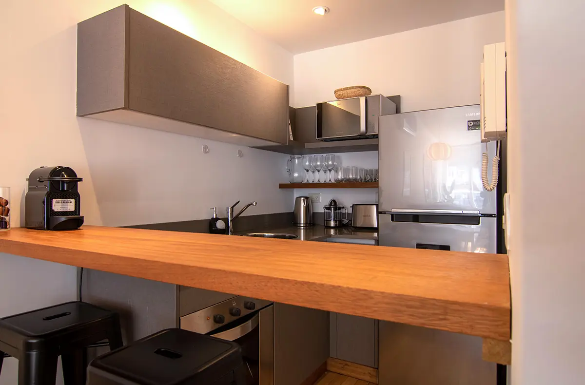 Tiene una capacidad hasta 3 personas adultas o una pareja con 2 niños. Excelente acceso a transporte público (buses, tren y bicicletas).