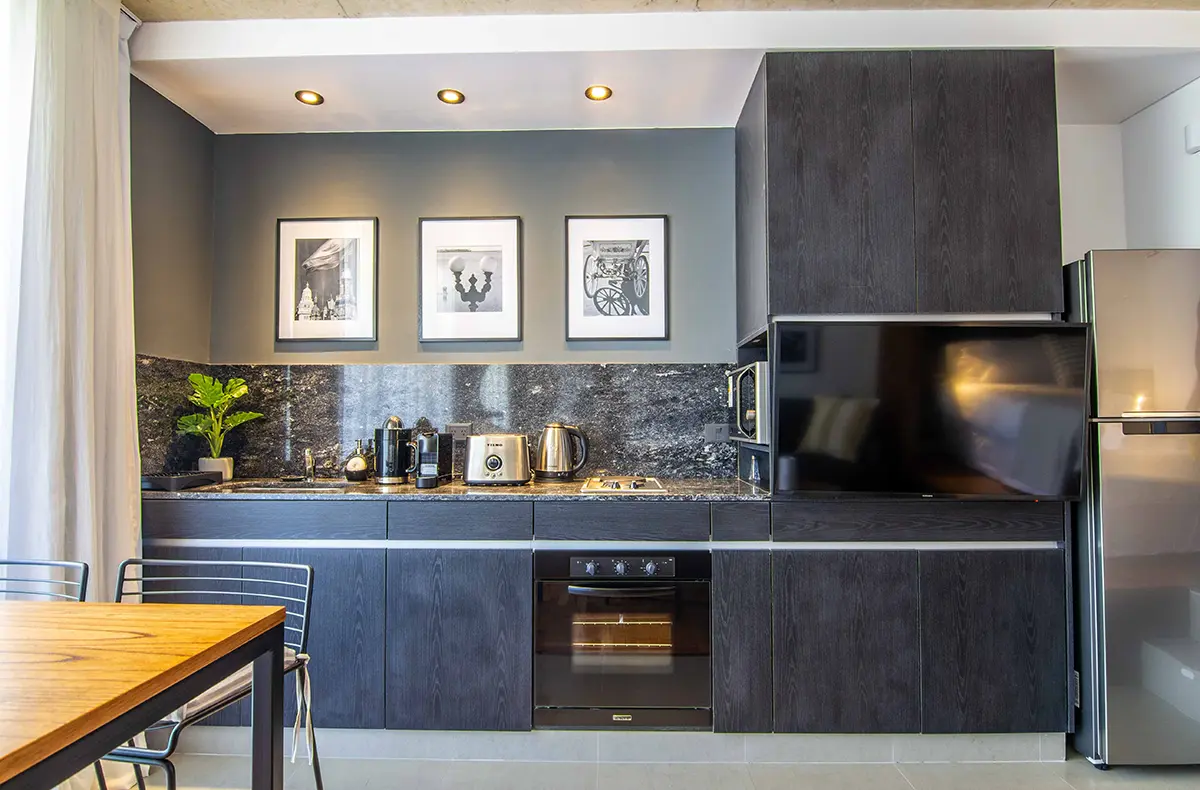 Es un departamento único por su amplitud, los detalles y calidad del equipamiento, su ubicación inmejorable en pleno Palermo Hollywood y su luminosidad. La cocina está totalmente equipada para disfrutarla con amigos y familia. Cuenta con horno, microondas, anafe, batería de cocina completa, vajilla de primer nivel y cafetera Nespresso. El Balcón tiene una parrilla y una vista genial del barrio. También cuenta con cochera privada y una piscina pequeña en PB.