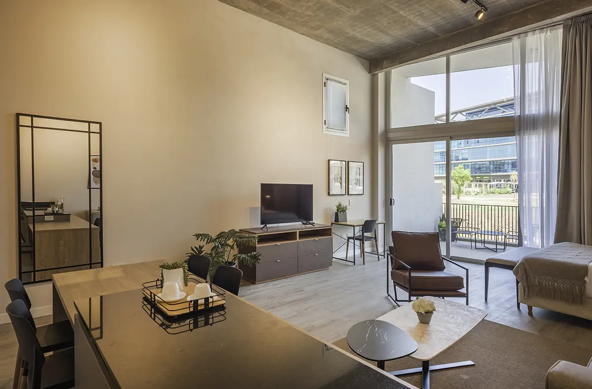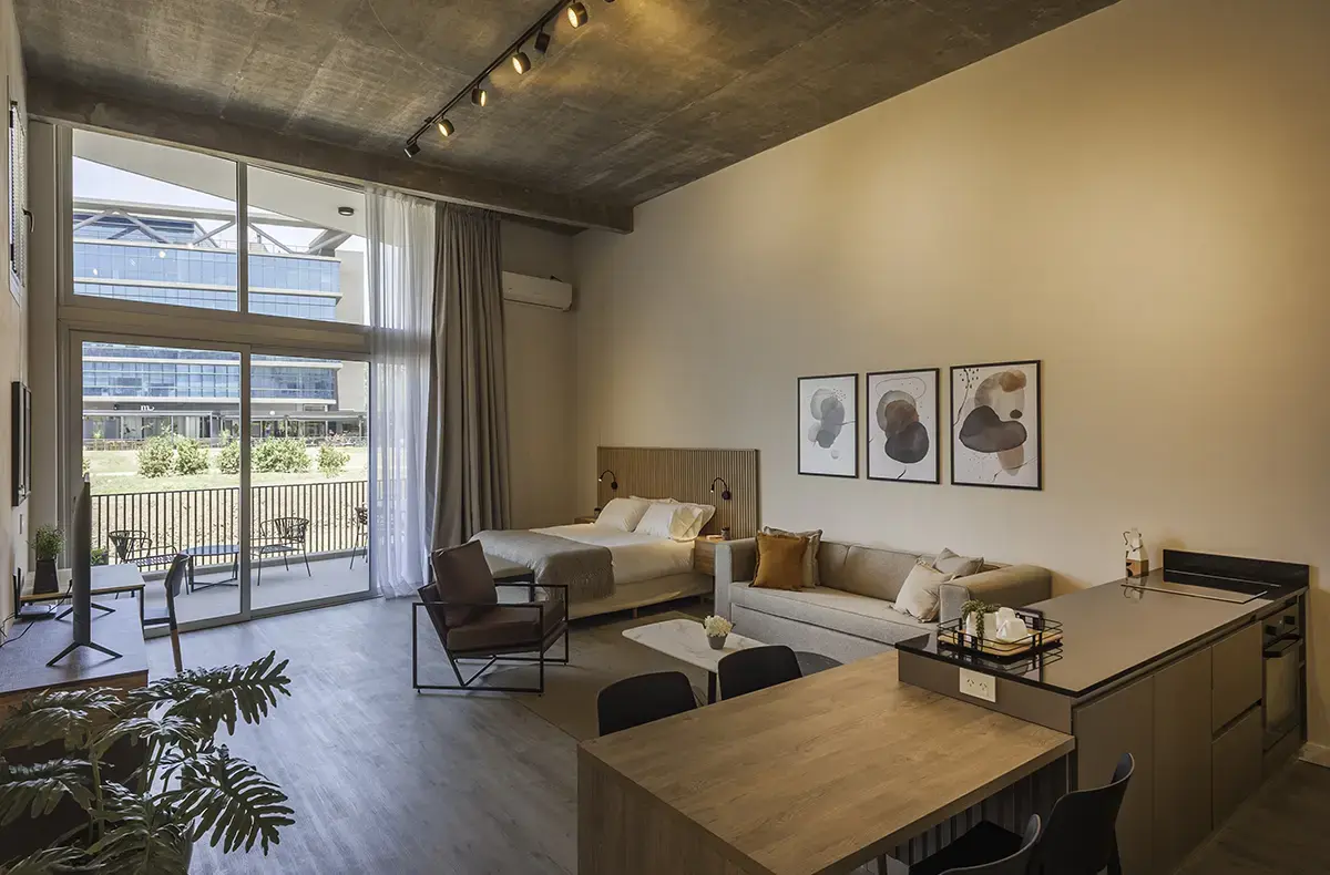 Descubrí Pilar en este hermoso departamento ubicado en el complejo Work & Live. Es un amplio monoambiente que está totalmente equipado para estadías largas y trabajo remoto. Apenas ingreses te sentirás en tu casa y podrás disfrutar su amplio balcón.